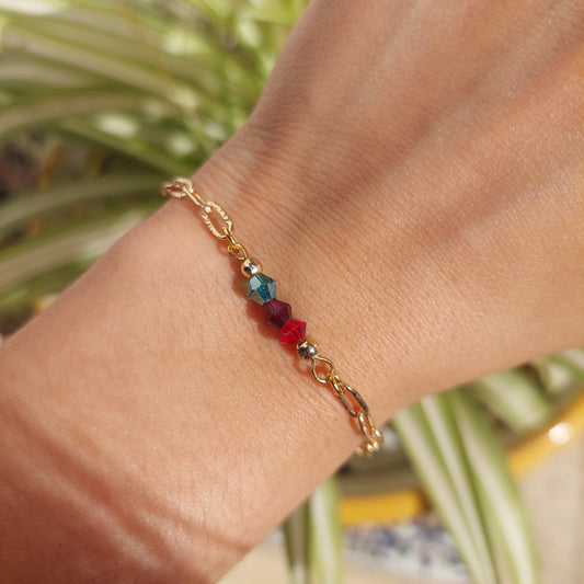J’emploie des perles raffinées associées à des métaux durables comme l’acier inoxydable et le plaqué or, afin de garantir la longévité de vos bijoux